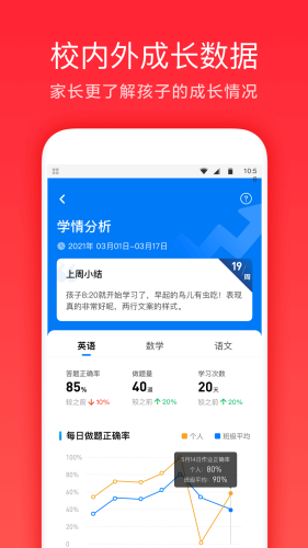 校内报告:校内作业和能力测评反馈,随时查看孩子成长动态。