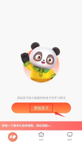 2、在首页下方找到“添加孩子”按钮,点击进入账号管理页面。