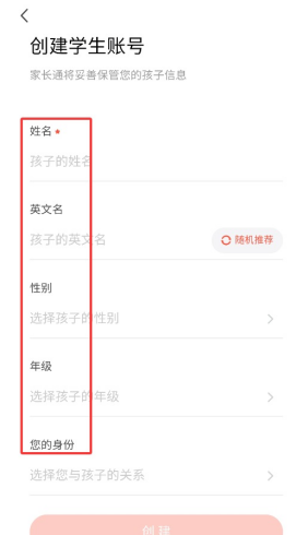 4、根据提示填写学生姓名、性别、年级及家长身份等信息即可完成创建。