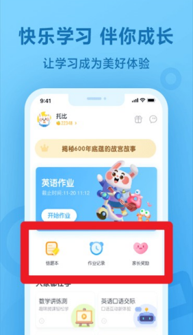 快乐:摆脱枯燥的学习过程,进入自学乐园的童话王国,陪你一起作业,快乐学习。