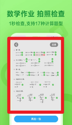 4、拍照上传数学作业,系统可快速识别题型并自动进行批改与反馈。