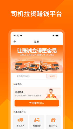 2、打开货拉拉司机版app,第一次登陆需要注册一下,仅需要填写手机号码及相关信息。