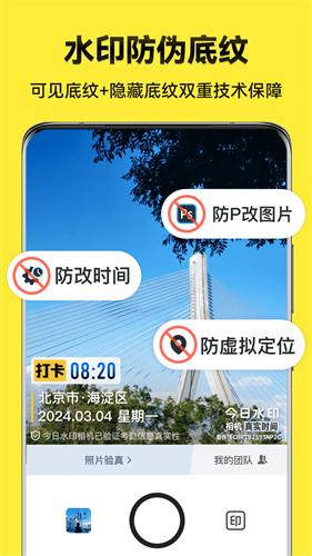 1、软件在水印拍照后杜绝任何的水印内容篡改,确保信息真实。