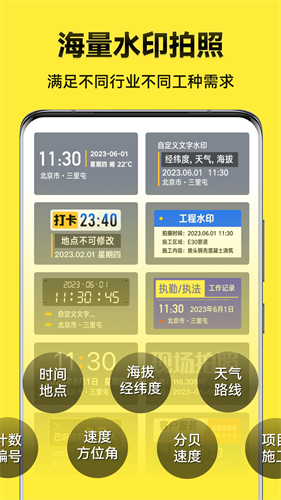 4、覆盖30+行业场景模板库,包含物业巡检/工程施工/会议记录等垂直领域专用水印组合。
