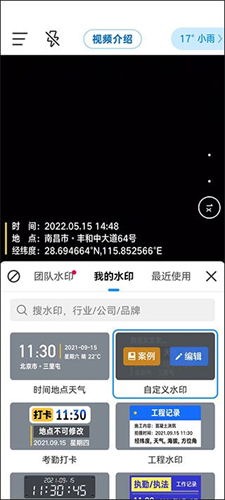 软件将水印模板进行了分类,有时间、天气、经纬度等多样水印。