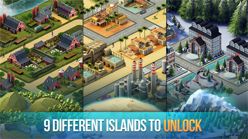 游戏才用了地区解锁的方式,当玩家们在游戏中升级时,将会解锁不同的岛屿,我们的城市将能建立在旅游天堂岛屿上、火山岛上、沼泽地上,甚至沙漠里等等。此外,游戏还提供许多超酷的城市建造材料,让我们可以随意建造自己的城市、村庄、小社区以及大都市。游戏中我们并不是随意安排建筑的,各位要注意在城市中也要建设一些公园、河道等美化城市的区域,以此提升城市居民的幸福指数,这也关系到我们所获得的经验与奖励,对玩家们来说规划比建设更加重要,只有合理的规划,才能让城市变成真正的魅力家园。