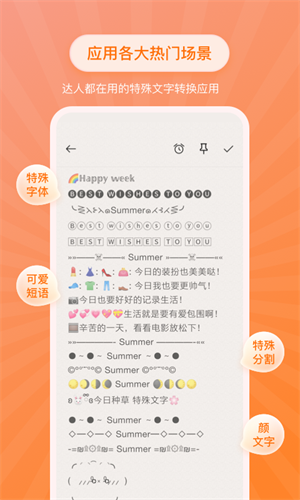 3、超酷、超可爱、超个性的字体、颜文字和特殊符号,可以在任何app中使用。