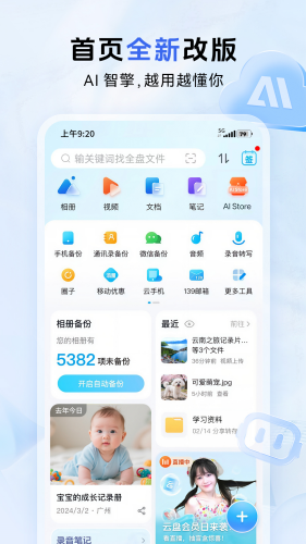 中国移动云盘app下载安装2025是一款安全、便捷的云存储平台,面向所有用户提供安全、智能、便捷、不限速的个人、家庭云存储服务,支持音乐、相册、通讯录、通话记录、应用等内容的备份,上传到网盘的视频可以不用下载,直接在线播放,搭载灵犀智能体、AI个人知识库和百款AI工具,存照片、找文件、写创作、拍搜题都变得超简单,软件的存储传输也有非常安全的加密通道,给用户带来电信级的安全保障,中国移动云盘app方便用户备份、传输和共享文件,同时也提供了远程访问和多设备同步等功能,能够满足用户对于文件管理的各种需求。