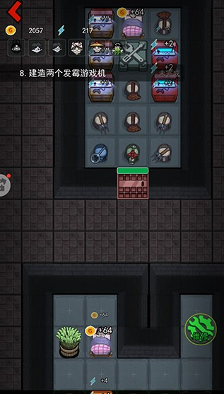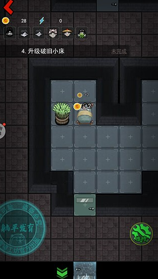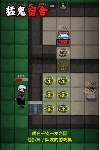 升级优先度:找好宿舍后优先提升床的等级和建造两个炮台,因为这个时候猛鬼还没有到来,所以优先提升床铺的等级快速获取金币,然后再去提升门的等级,之后床铺的等级可以暂停一下,优先提升门的等级,否则很容易被猛鬼突破,提升到需要电力的时候再去商店购买游戏机,否则会很容易被猛鬼突破;