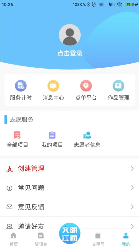 1、应用功能布局:资讯、活动、投诉、随手拍、线索于一体,是方便志愿者在进行志愿服务时的一个主要工具。