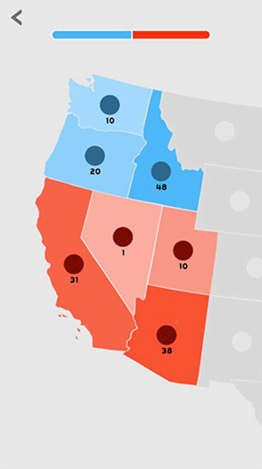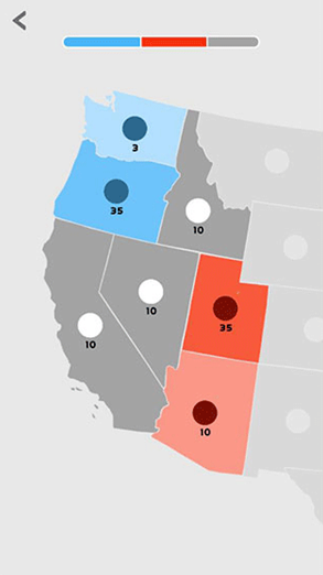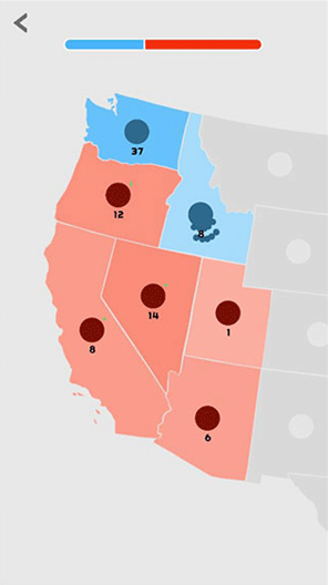 3、点击拖动地图块中间的圆点,即可表示派遣单位进行攻击扩张,圆点旁边的数字表示单位数量,单位数量会随着时间自动增长,数量越多,地图块的颜色也就越深。