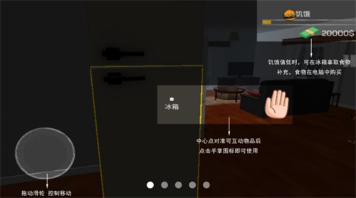 饥饿值低时,可在冰箱拿取食物补充,食物在电脑中购买