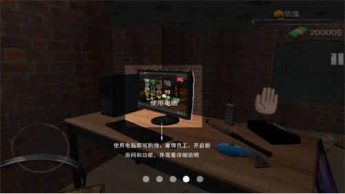 4、使用电脑即可购物、雇佣员工、开启新房间和功能,并观看详细说明