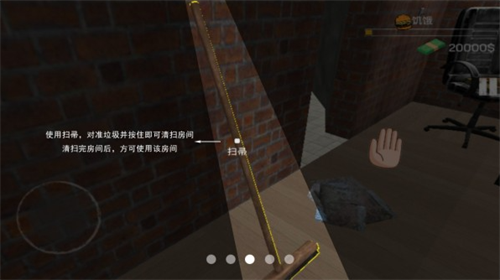 3、使用扫帚,对准垃圾并按住即可清扫房间清扫完房间后,方可使用该房间