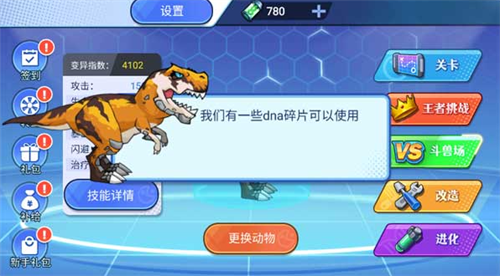 1、玩家如果想要进化自己的小恐龙,那么就需要一定数量的dna碎片来进行进化。