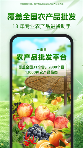 1、涵盖水果蔬菜、粮油干货、农资农机等35大类目,近1.5万品种,满足批发、零售及企业采购需求。