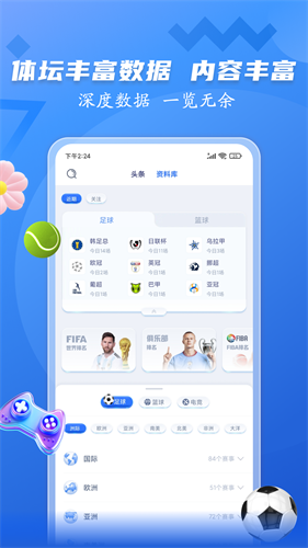 7、球队数据、FIFA、俱乐部、FIBA榜单、全球赛程数据实时更新。