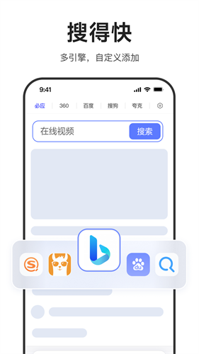 聚合多个热门搜索引擎,支持一键切换,搜索快速便捷。