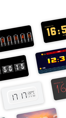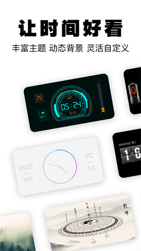 2、电子墨水时钟、像素风时钟、创意乾坤八卦时钟、科技风时钟等特色主题。