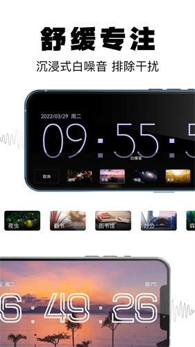 包含正倒计时器与番茄钟功能,搭配白噪音环境音效,支持震动提醒与进度可视化进度条。