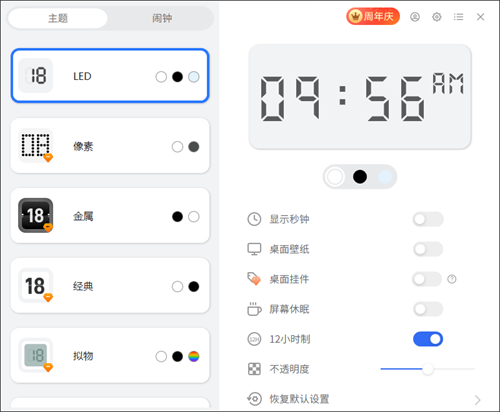 -能调整时钟透明度,方便用户根据桌面布局和个人喜好进行设置。