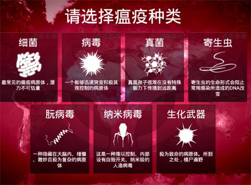 1、开始游戏,可以选择本次使用的瘟疫种类