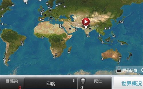 5、积攒了足够的DNA点数后,在左下方可以点开病情概况,对病毒进行升级变异,也可以在右下角查看解药研发情况