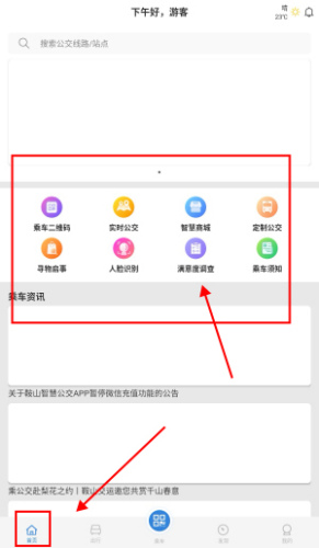 3、在首页中可以查看到乘车二维码、实时公交等服务。