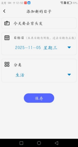 2、添加新的日子,记录着你今天要去剪头发,然后选择生活分类,保存。