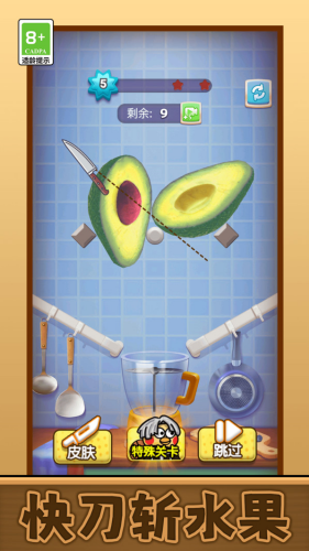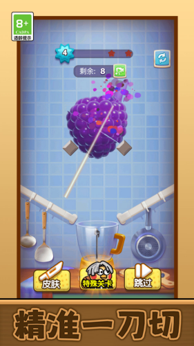 6、道具系统助力闯关,减速、额外刀数等实用道具,关键时刻化解危机,让新手也能轻松通关。