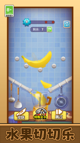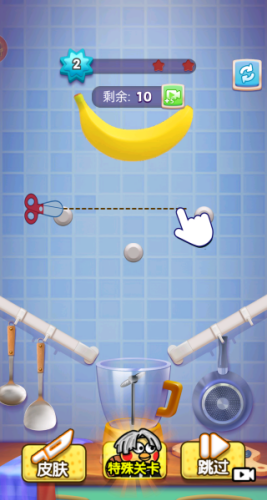 4、第二关是切香蕉,也是一样的步骤,选准一个地方就可以开始切了。