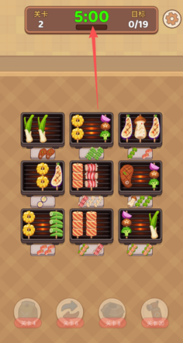 4、我们需要注意的是,后面更具难度的关卡中,消除了后面也有隐藏的烤串。可以选择道具去完成。