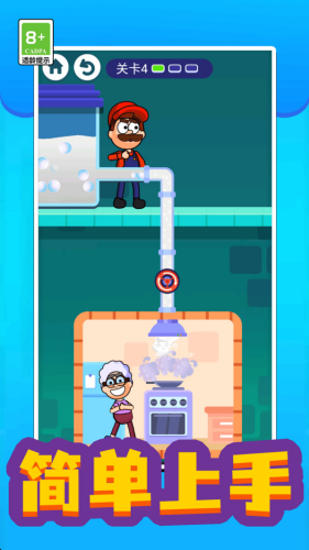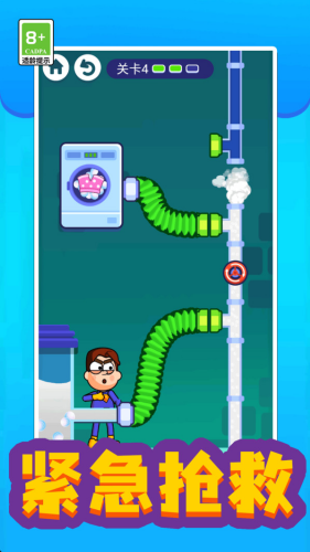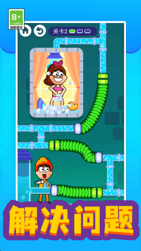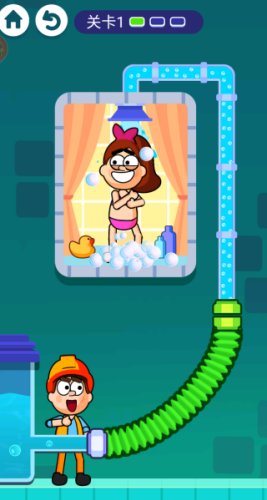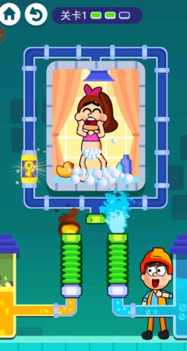 2、第一关中,因为水管断裂了,你要想办法连接起来,公主就可以洗澡了。