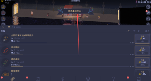 4、升级之后,比如我们后续可以解锁更多的摊位,比如炒年糕,或者是鸡肉串等等。