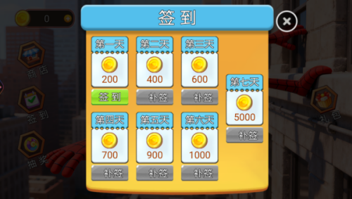 1、登录进入游戏,点击首页的签到任务,连续7天签到可以领取不同数量的金币。