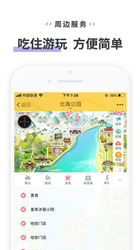 北海公园安卓app是专为北京北海公园打造的掌上地图公交,为用户提供专业级别导游服务,其中包含游记分享、旅游攻略、游玩路线推荐以及语音导游等一系列服务,并且还搭配了全新的手绘卡通地图,让你旅游更具乐趣,感受身临其境的游玩体验。软件不仅仅提供一站式语音导航服务,同时还会将周边的特色活动推送给你,你也可以在“游记”专栏中与其他旅游爱好者打成一片,分享各自旅游心得点滴,发现更多旅游乐趣。软件带来全新自由行游玩体验,让您更深入的了解北海公园的历史底蕴,快来尝试吧,让优美的风景与悦耳的声音将会成为您独特的回忆。