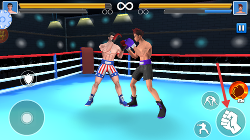 2、进入拳击场,利用屏幕右下方的拳头攻击按钮,瞅准时机点击对对手发动攻击。