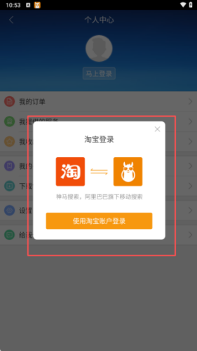 3、进入登录界面,用户可以通过淘宝账户进行登录。