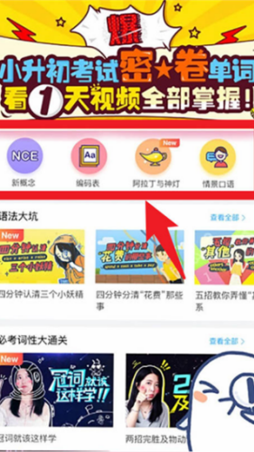 3、设置了新概念、编码表、情景口语等多个板块,轻松选择。