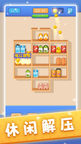 3、有挑战的分类玩法:沉浸在物品世界中,参与令人上瘾的分类谜题。交换和匹配3个或更多相同的物品,将它们从板上清除并获得积分。