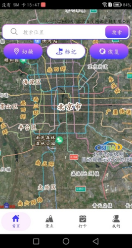 1、进入软件后,你可以搜索位置北京,还可以切换和标记。