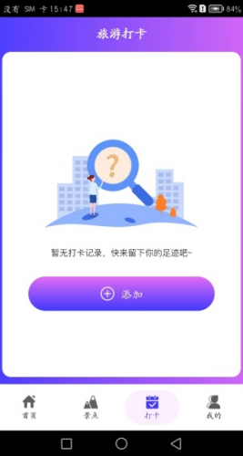 3、切换到打卡板块,你可以添加自己去过的地方,然后记录下来。