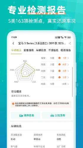 软件里面的车源有专业的检测报告,真实呈现车况,用户可安心交易。