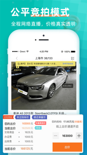用户在找到自己喜欢的汽车后可以立即参与竞拍,出最高价拿下爱车。