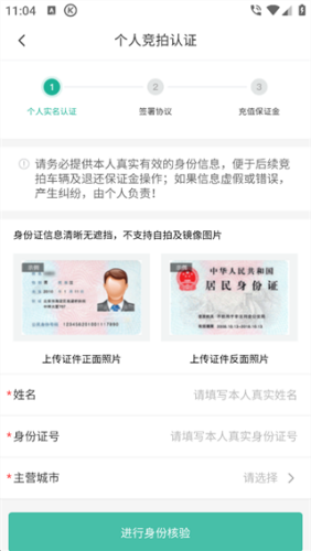5、以个人竞拍为例,上传信息填写完成后,点击进行身份核验,完成后就可以参与竞拍了。