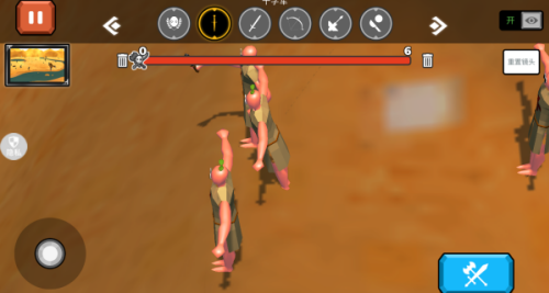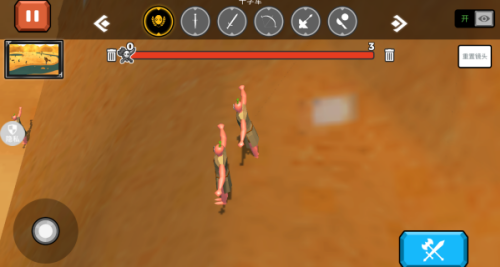 2、利用虚拟摇杆操控着你的角色四处探索,点击剑的按钮,放置士兵。