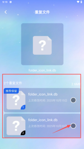 2、软件会扫描手机里的有重复的文件,用户可以选择需要删除的点击。