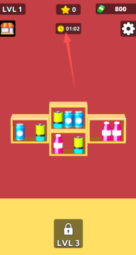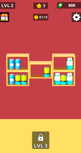 1、点击拖动你想要消除的物品,三个放在一个货架中,就可以进行消除了。