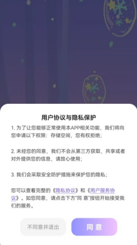1、打开软件就能看到相关协议及服务,大家了解后点同意。