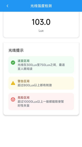 7、光线强度实时检测,精准显示环境光照数值,适配户外出行、摄影采光、室内照明调节等多种光照参考场景。